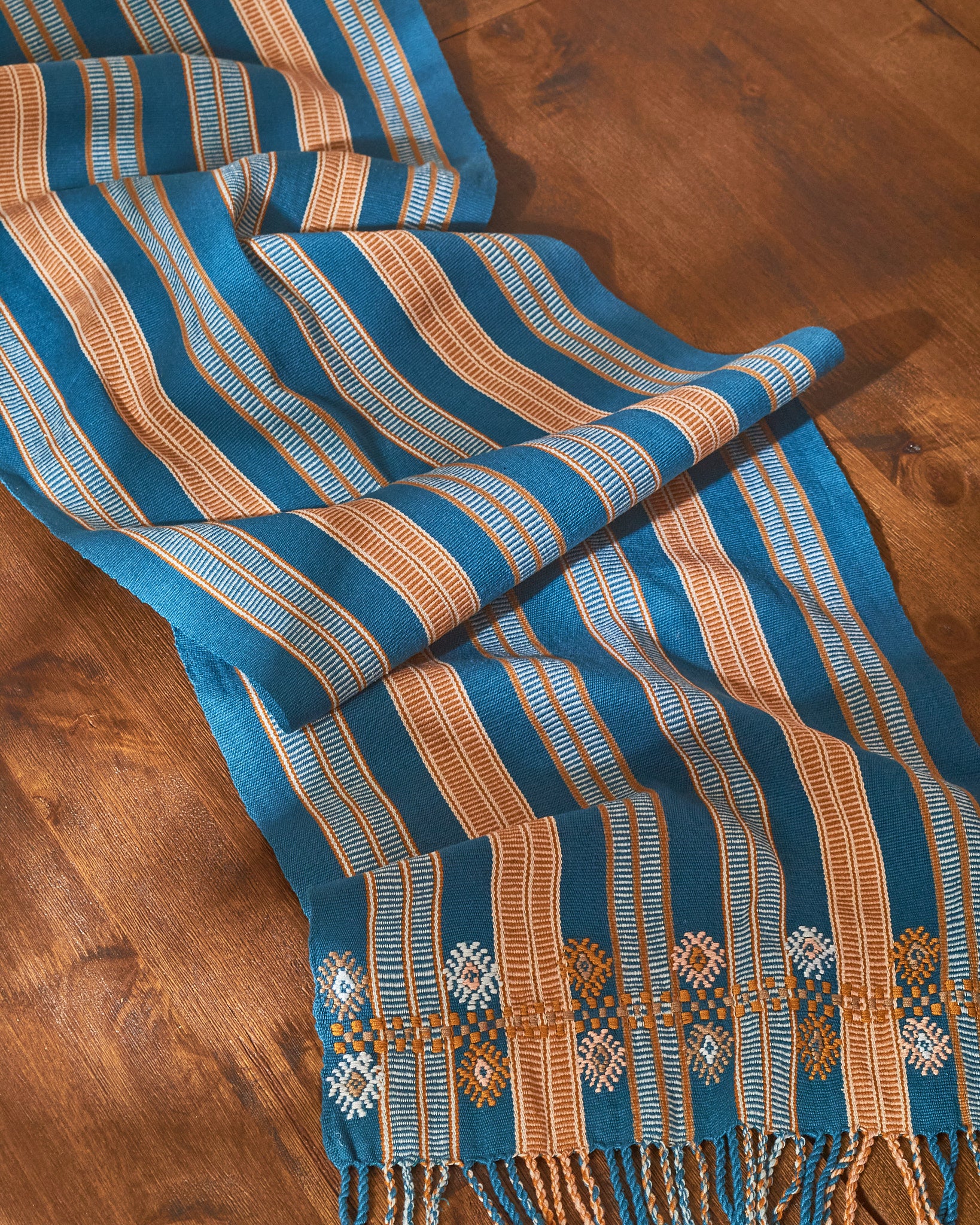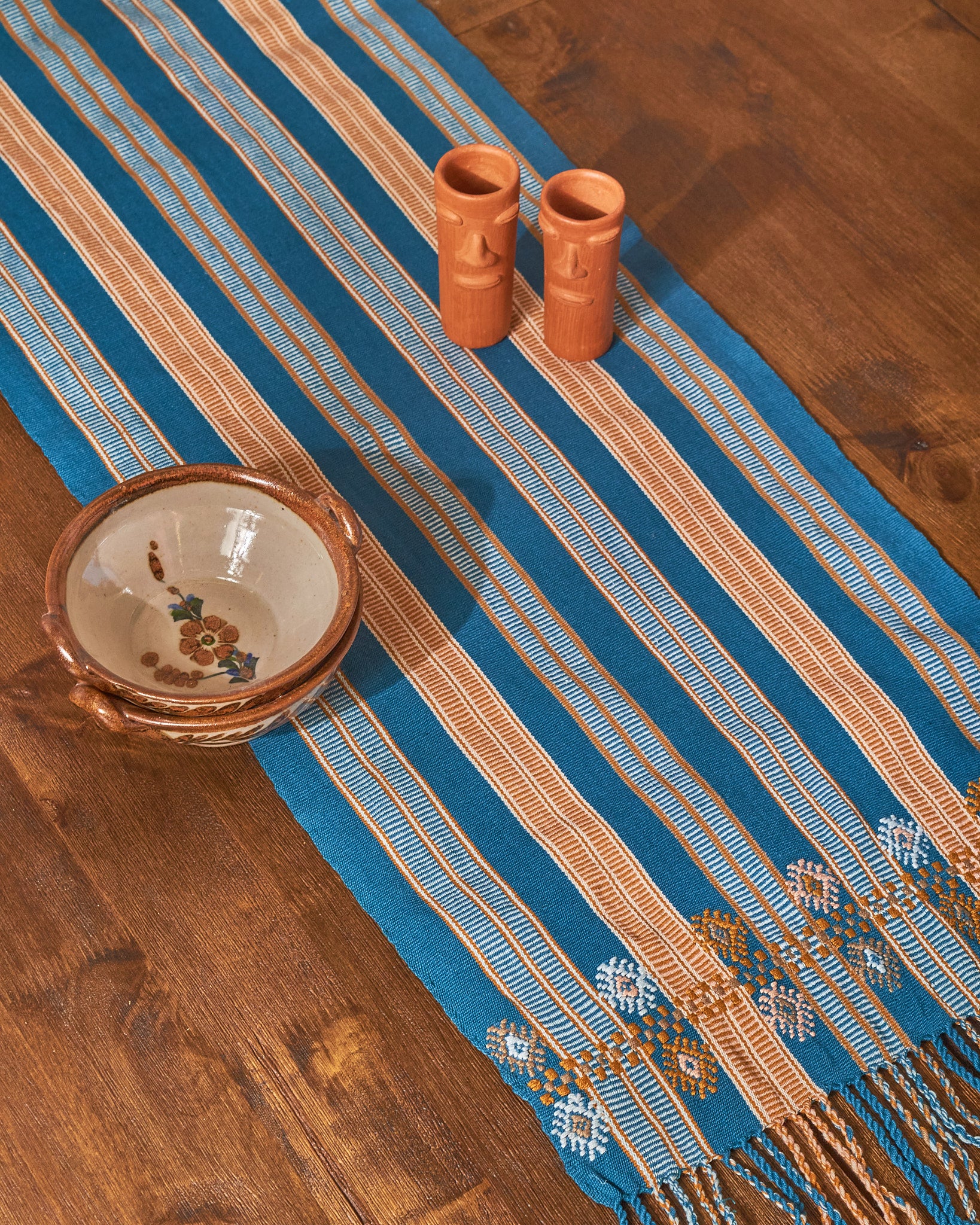 This stunning table runner is a vibrant testament to the rich cultural heritage of Chiapas, Mexico. Intricately woven by talented artisans in Pantelhó using a traditional backstrap loom, each piece embodies a long and cherished history of weaving in the region. The gorgeous colors, a harmonious blend of playful stripes and decorative flourishes, are meticulously woven in using a brocade technique. We're in awe of the immense care and craftsmanship that goes into each one!