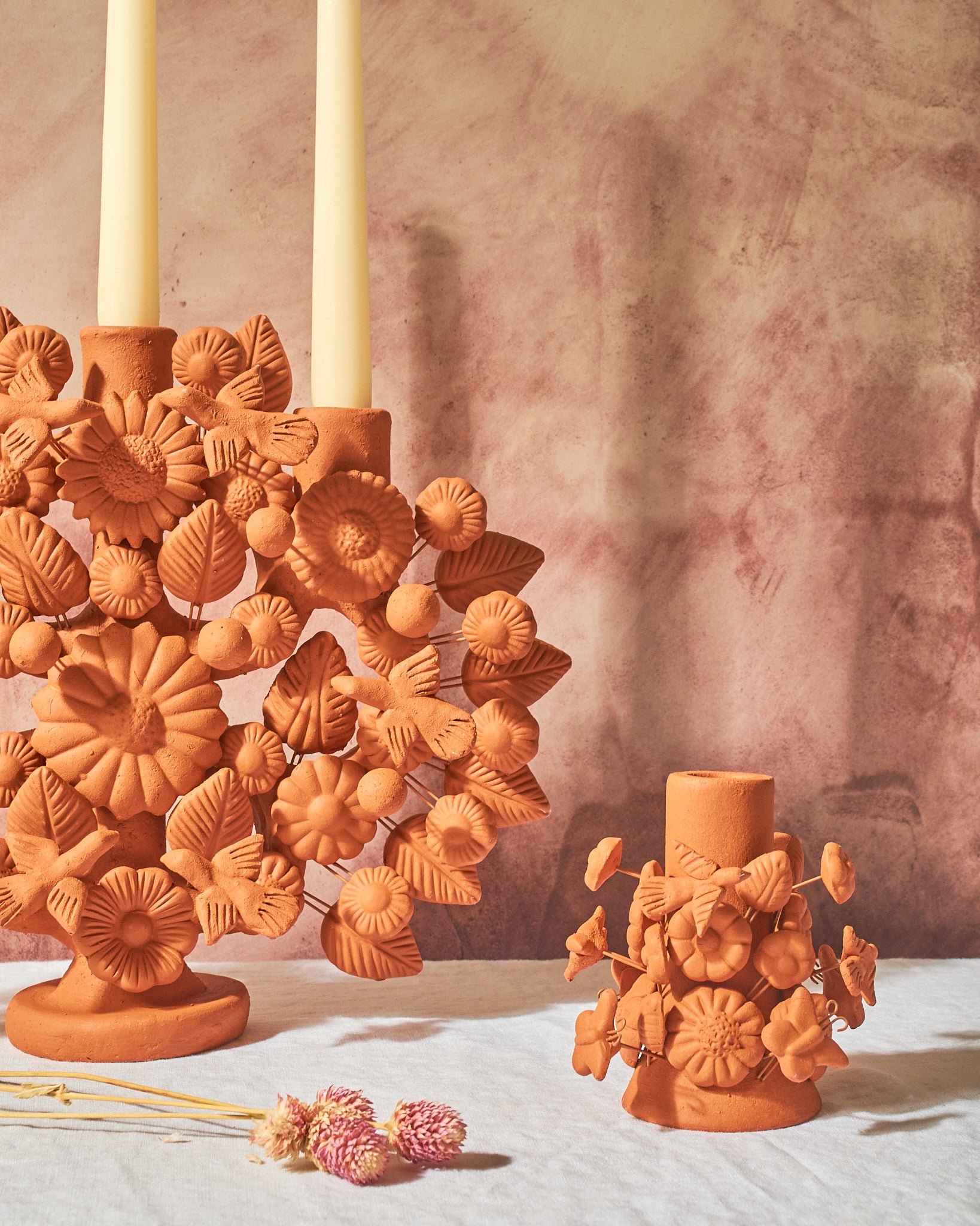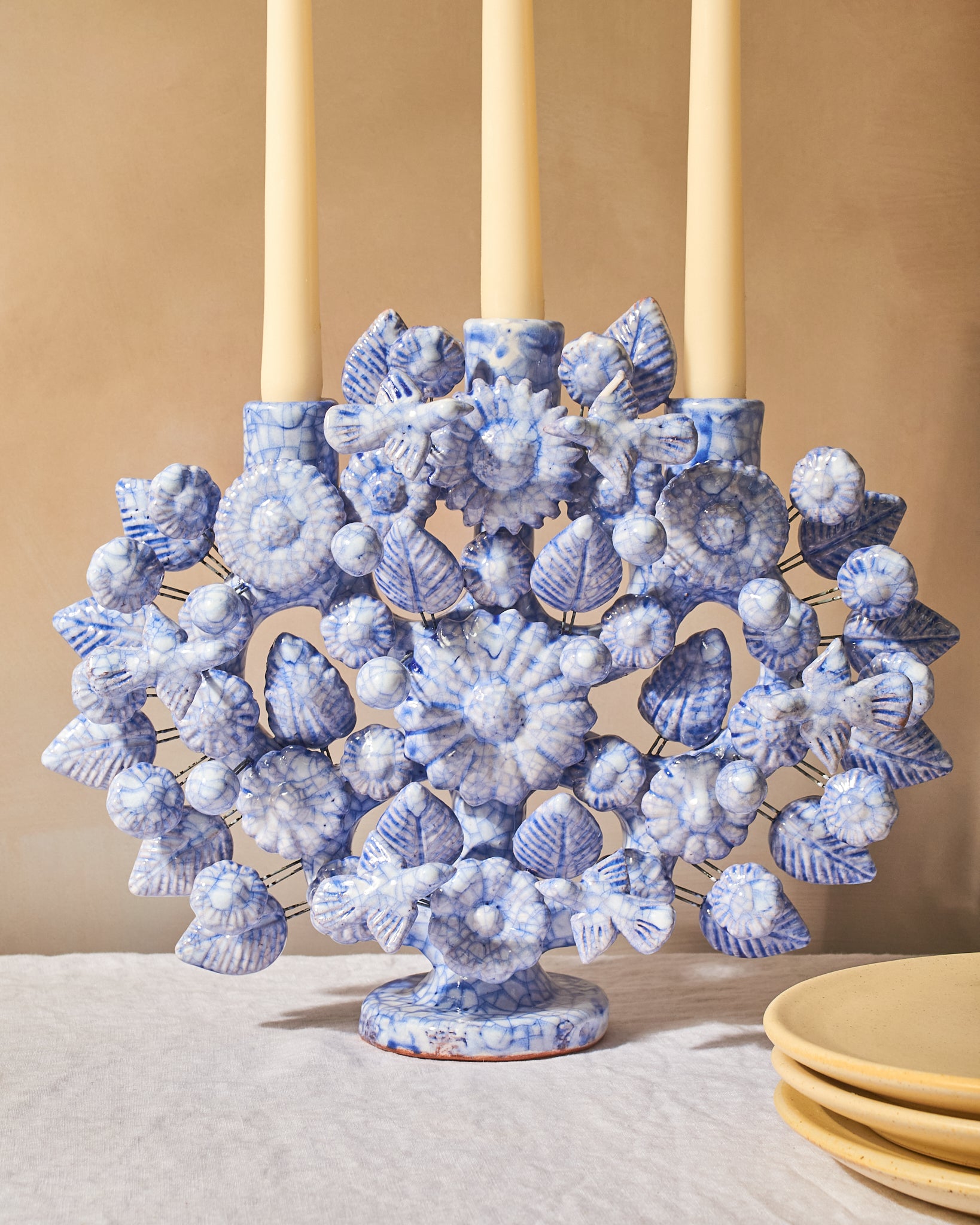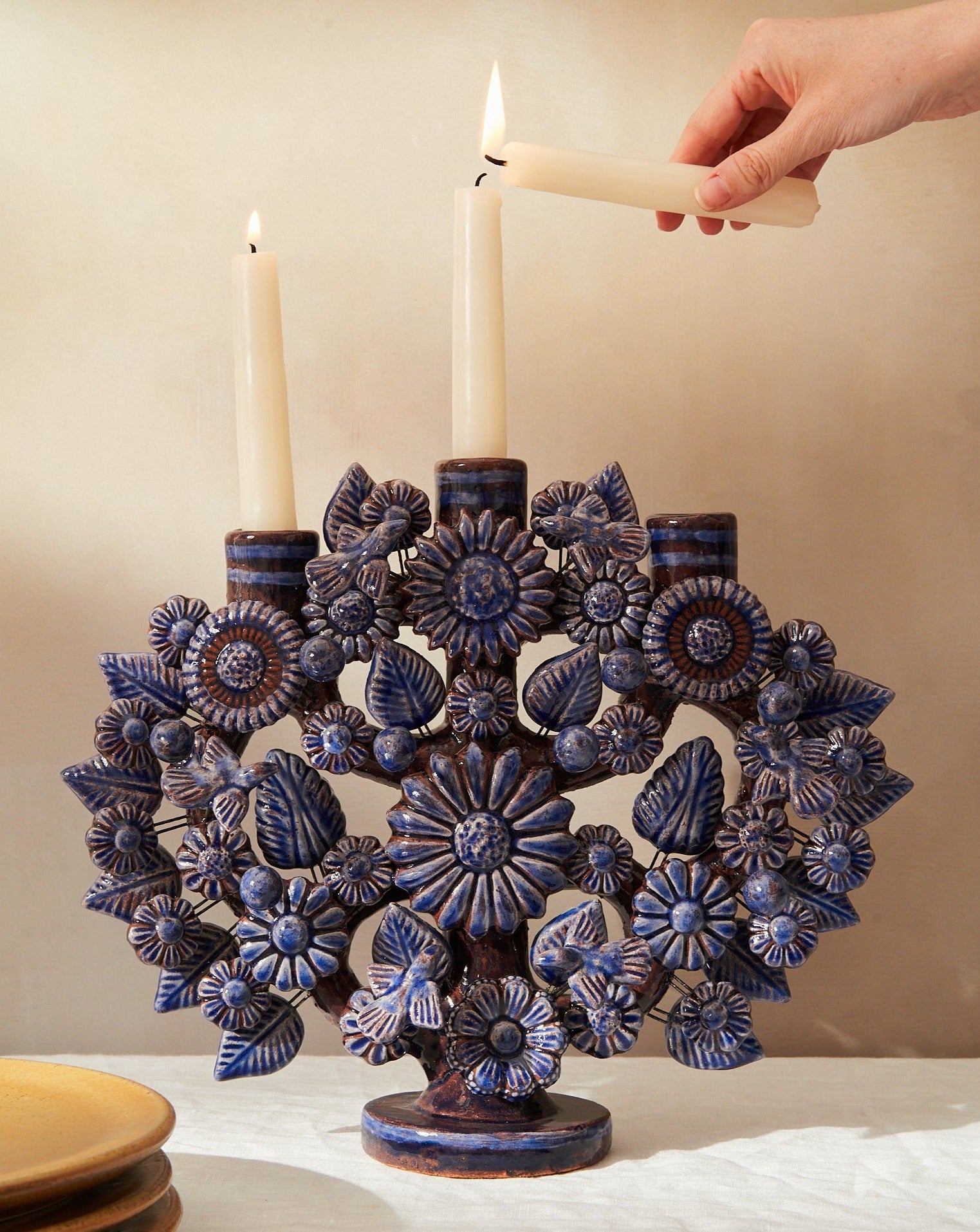 Hand-sculpted in the historic workshops of Metepec, State of México, this intricate piece is a testament to the Artesanías Montoya family legacy. Each miniature flower, leaf, and blossom is molded by hand from raw clay and fired in traditional kilns before being meticulously hand-glazed. Traditionally used to tell stories of creation and lineage, our curated Árbol balances vibrant folk-art tradition with a sophisticated silhouette that commands attention on a minimalist mantle or a layered dining landscape.