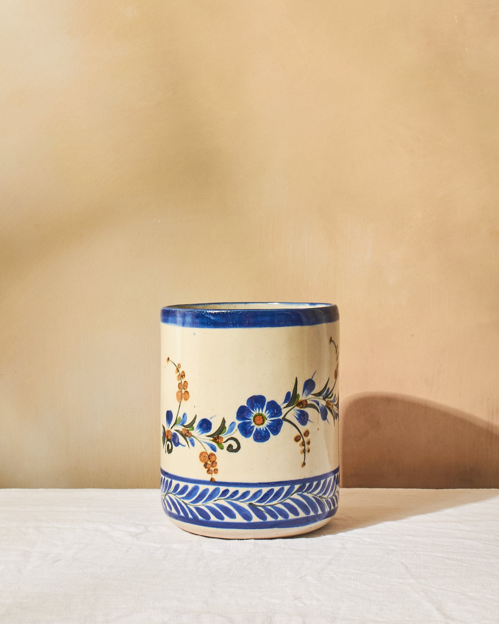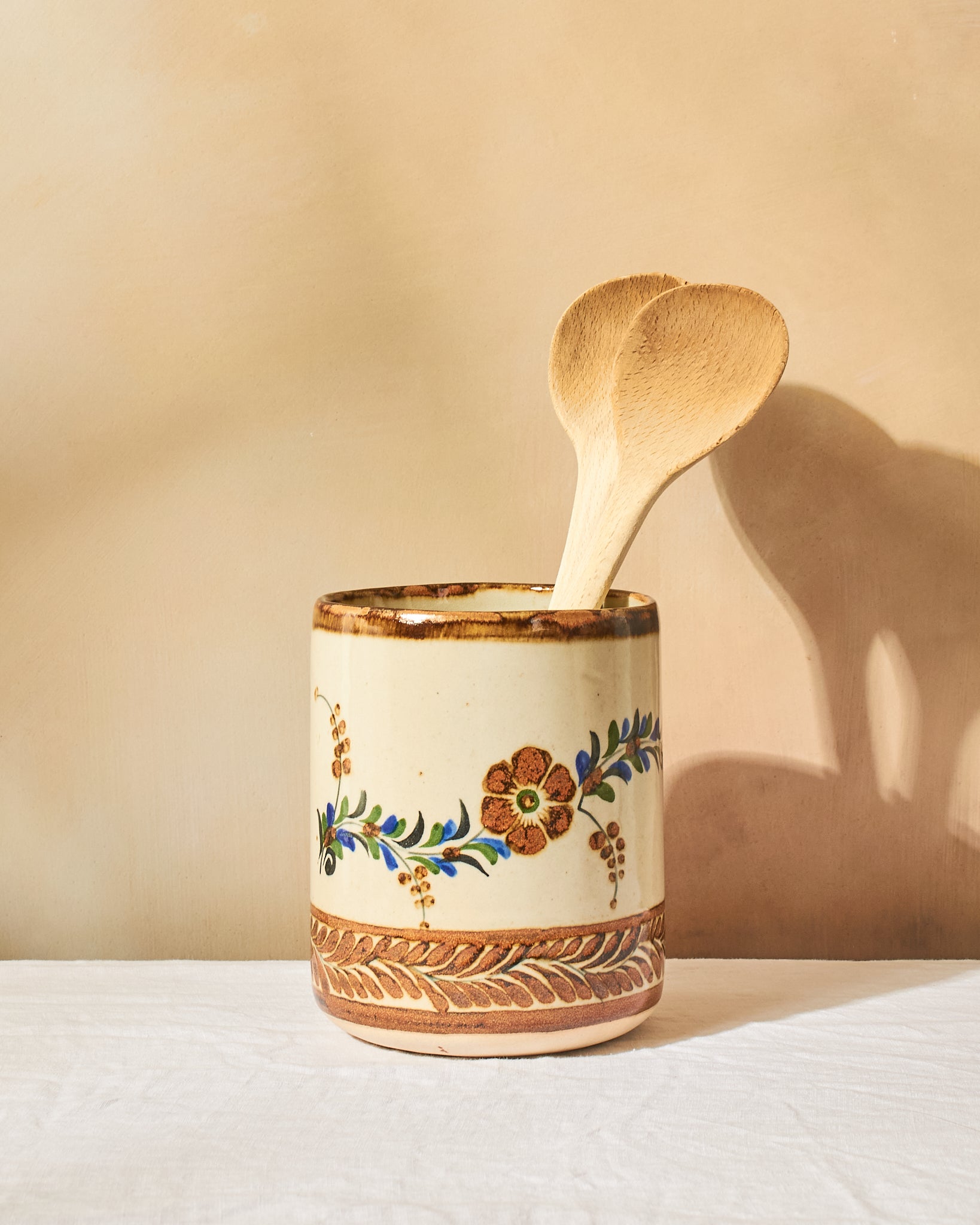 Say goodbye to kitchen clutter with this charming utensil holder! Handcrafted and hand-painted in the traditional Tonalá style, it's the perfect blend of beauty and function. Its vibrant floral design adds a pop of color to your countertop, while its spacious interior keeps all your essential cooking tools organized and within reach.